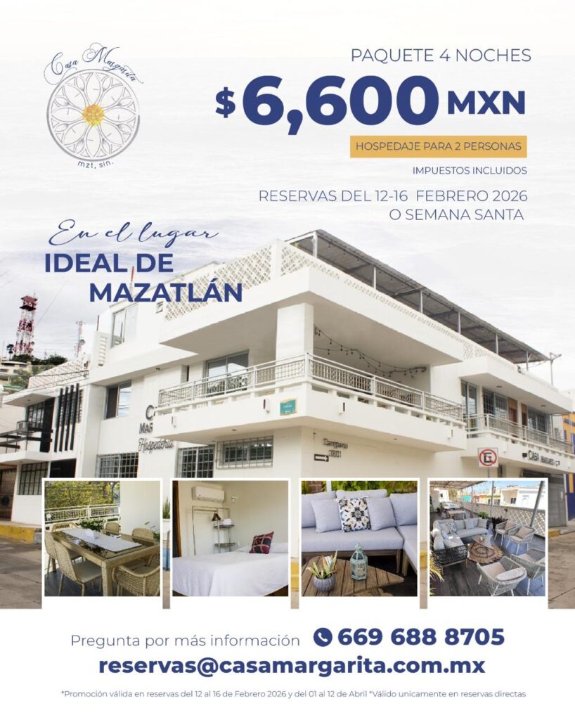 Equipada con todo lo necesario para estancias cortas o prolongadas Casa Margarita es el lugar ideal para disfrutar de gastronomía local, galerías de arte, eventos culturales en la plazuela Machado, el Teatro Angela Peralta, y de nuestra máxima fiesta el Carnaval Internacional de Mazatlán.